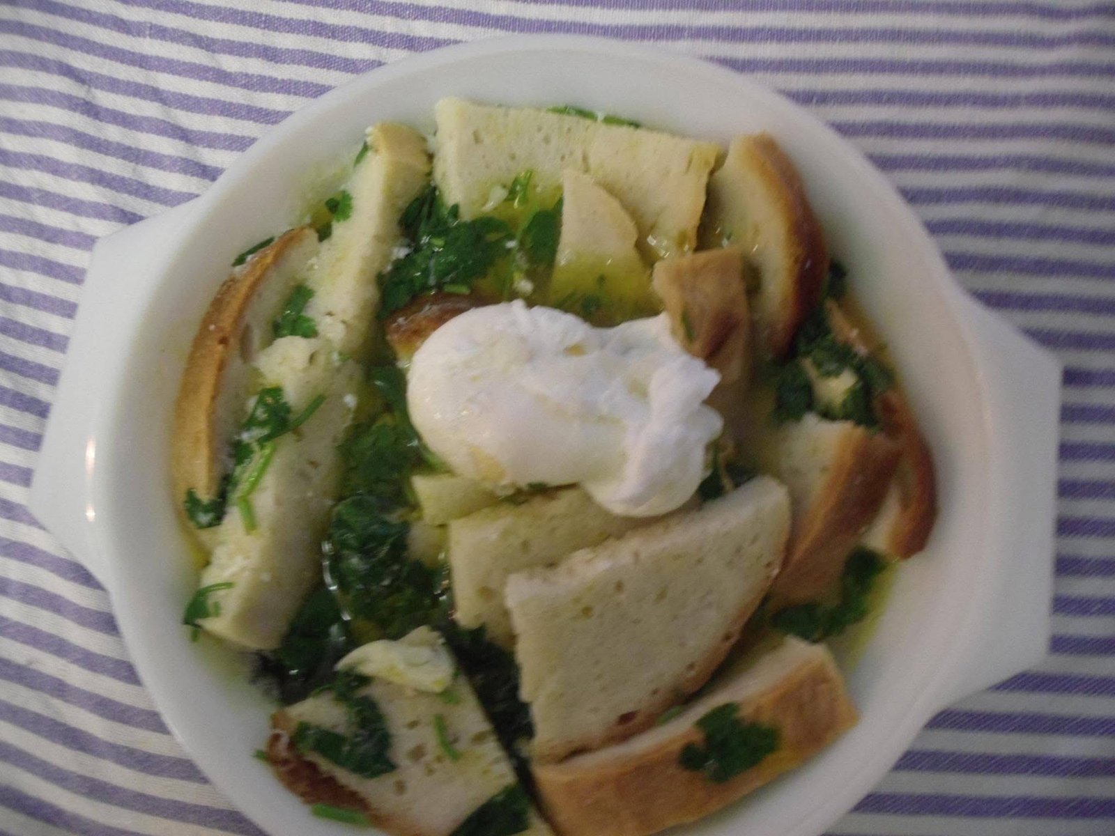 • Serve a açorda bem quente com o ovo escalfado por cima e mais um fio de azeite.