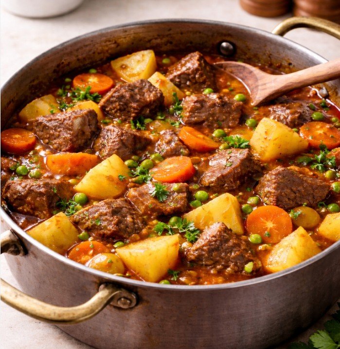 Este estufado de carne com legumes é um verdadeiro clássico da cozinha caseira portuguesa, daqueles pratos que enchem a casa de aromas e a mesa de conforto. Preparado lentamente, permite que a carne fique extremamente tenra e que o molho ganhe profundidade e riqueza de sabor, envolvendo na perfeição os legumes. É uma refeição simples, mas cheia de tradição, ideal para dias mais frescos ou para reunir a família à volta de um prato reconfortante.