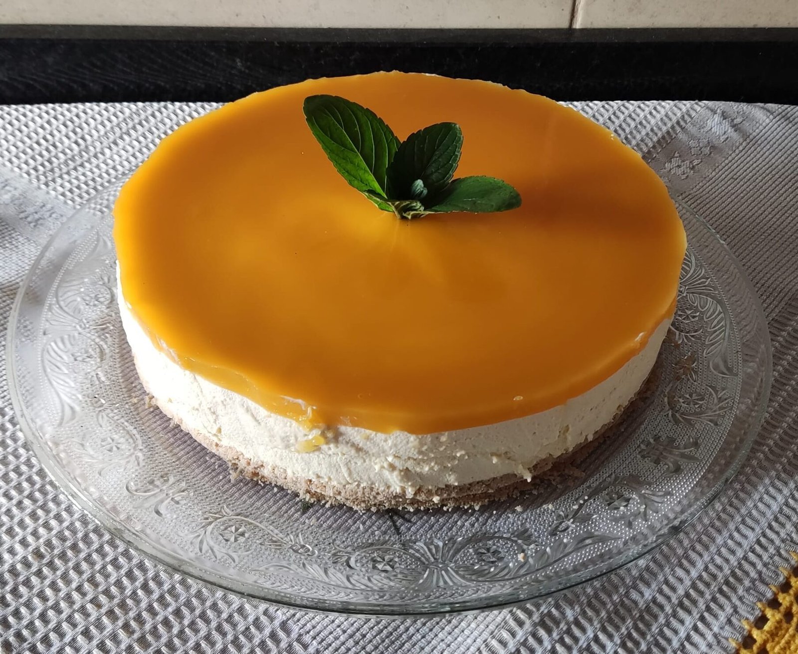 Cheesecake fresco e cremoso com sabor intenso a manga, combinado com uma base crocante de bolacha e uma cobertura suave e brilhante, perfeito para os amantes deste fruto tropical.