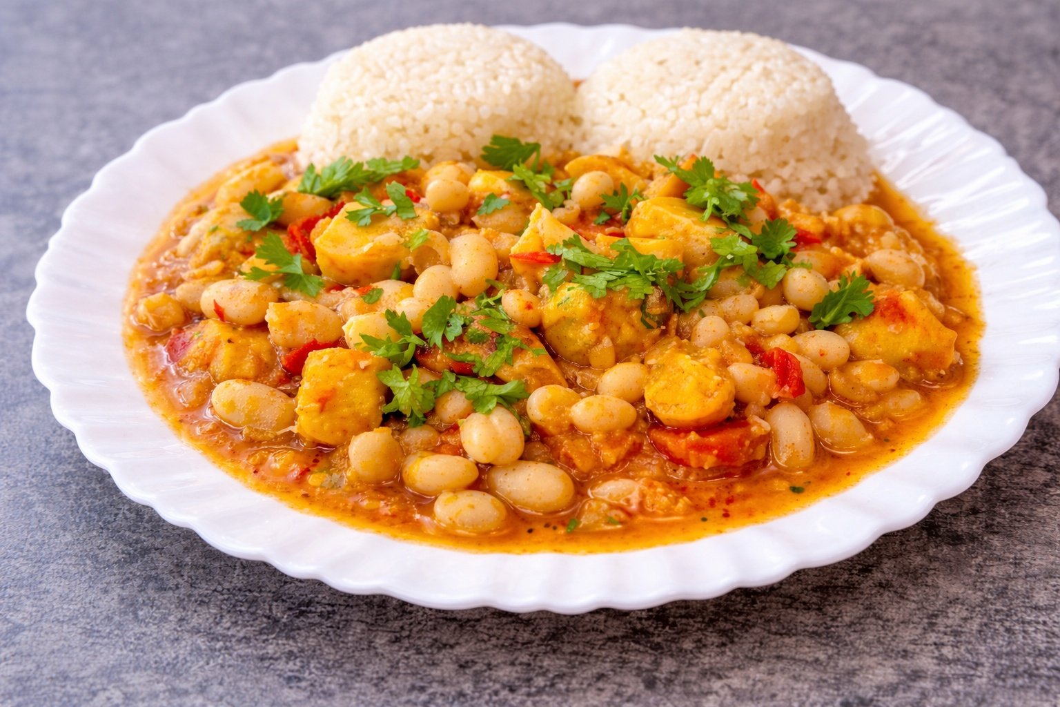 Uma feijoada reconfortante e cheia de sabor, onde os chocos tenros se combinam com feijão branco e enchidos. Um prato tradicional português, perfeito para refeições em família