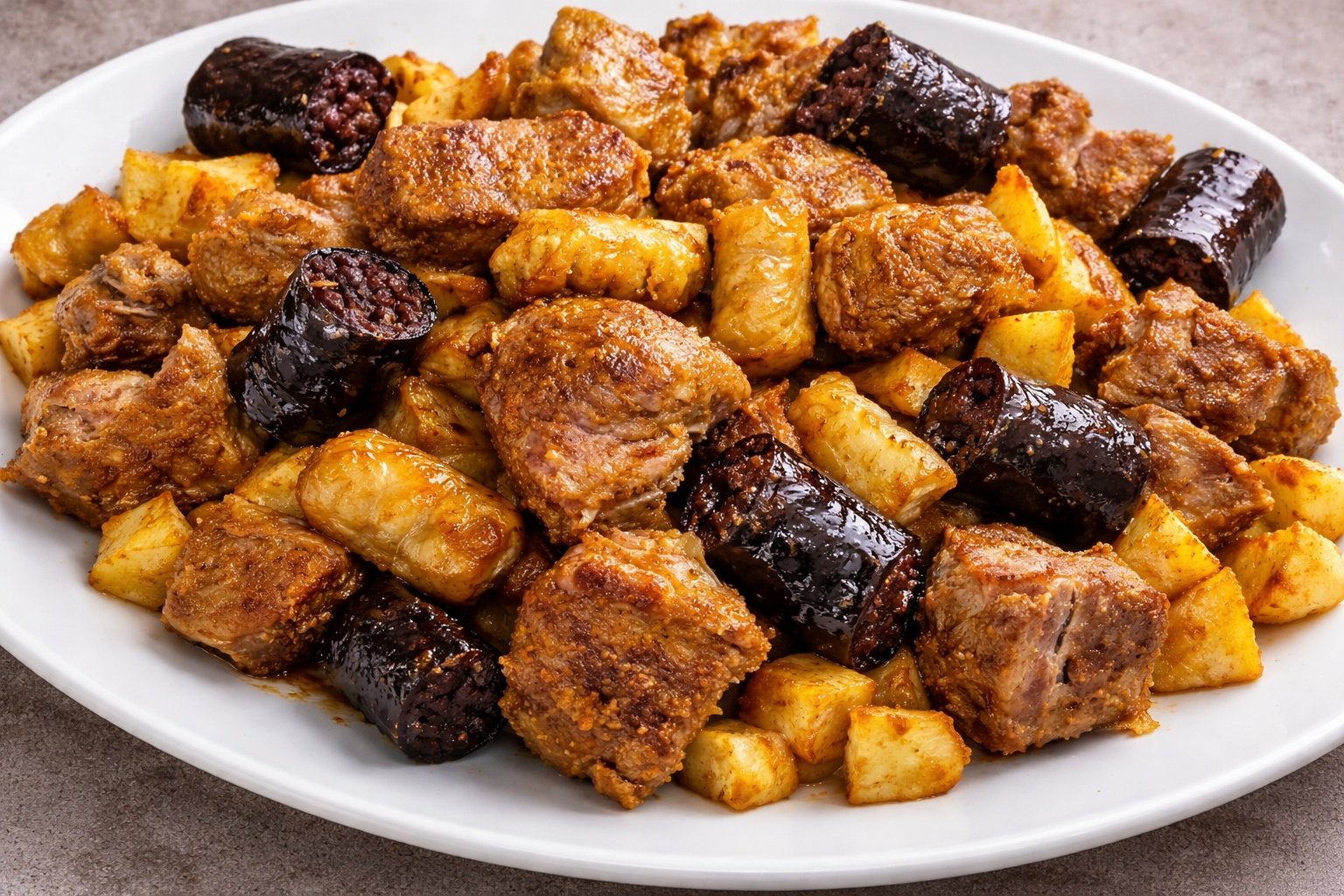 Um prato típico do Minho, rico e cheio de sabor, onde a carne de porco é marinada e cozinhada lentamente, acompanhada por enchidos e elementos crocantes que criam um contraste irresistível.