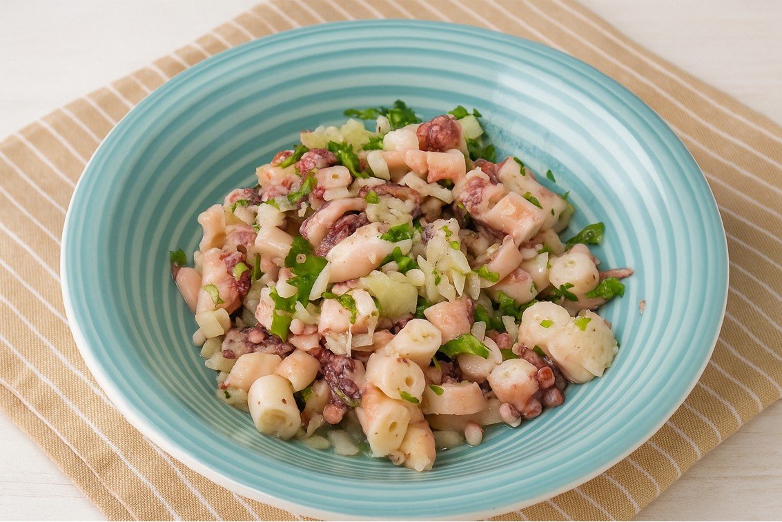 A salada de polvo com coentros é um clássico da gastronomia portuguesa: leve, fresca e cheia de sabor. O polvo é cozido até ficar tenro, depois temperado com azeite, vinagre, cebola, alho e coentros frescos. Uma receita simples e deliciosa, perfeita para servir fria como entrada ou prato principal nos dias mais quentes.
