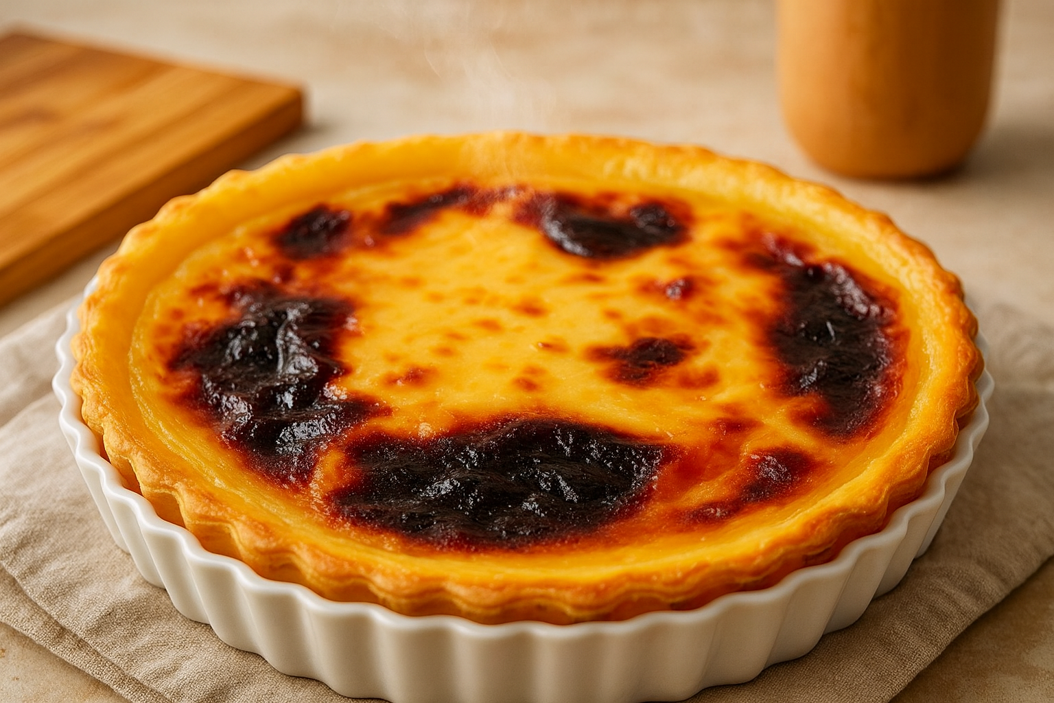 Uma tarte simples e deliciosa, com massa folhada estaladiça e um recheio cremoso de leite, ovos e baunilha. Perfeita para qualquer ocasião e muito fácil de preparar.